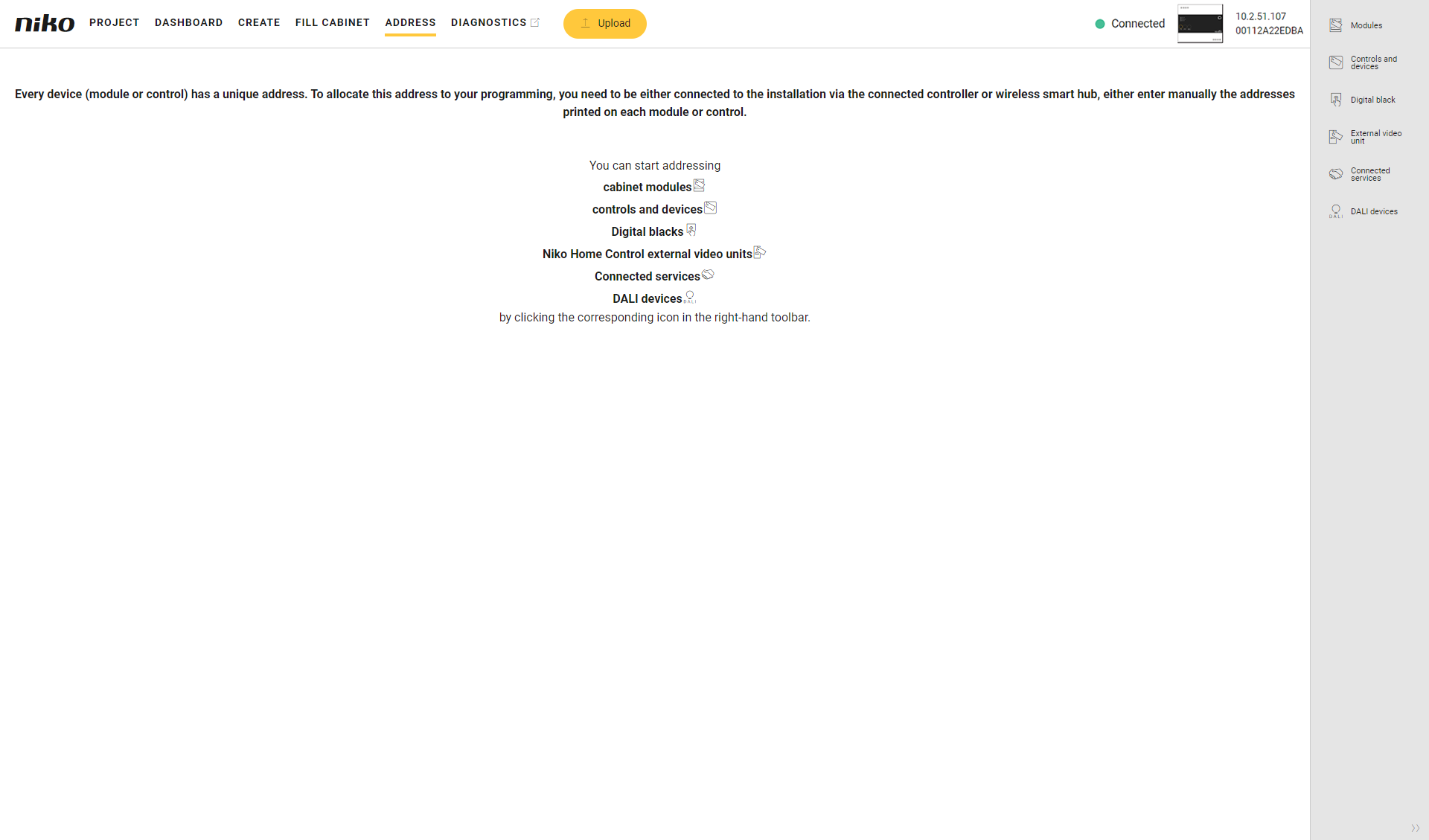 In the right-hand button bar, click on the button DALI devices.